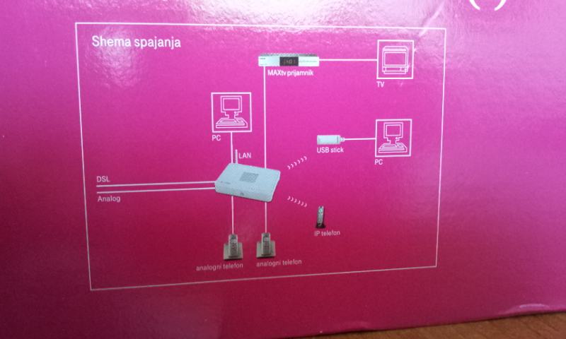 na taj vrhunski router možete spojiti nekoliko kompijutera i laptopa, bilo žično ili bežično, nekoliko telefona, čak i bežično, ako vaš telefon to podržava i možete još na njega spojiti prijamnik za max TV i gledati max televiziju ukoliko to imate.