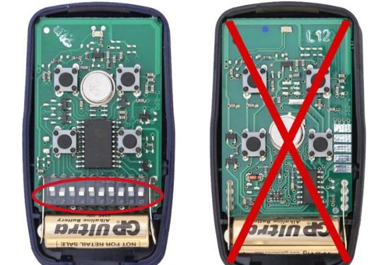 Radio kodiranje: fiksni kod pomoću deset malih prekidača (switch).