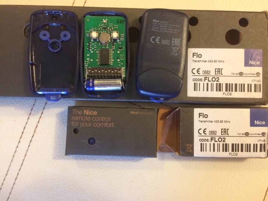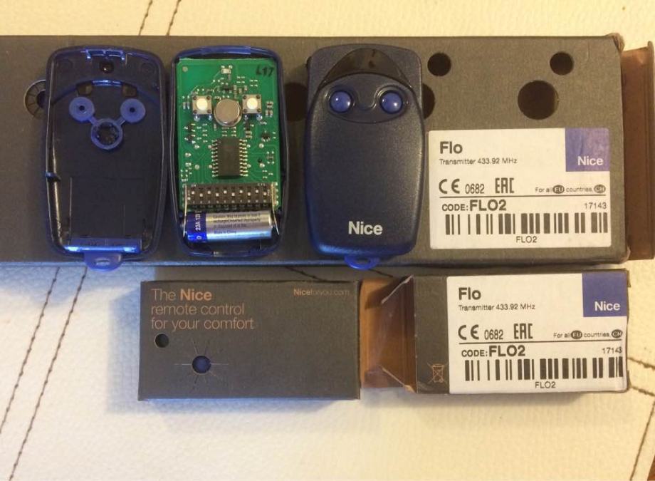 Novi orginalni zapakirani daljinski upravljač za: klizna dvorišna vrata, krilna ili klizna vrata, garažna vrata, rampu, portune ili lesu NICE - FLO2 ili FLO4 - Transmitter 433,92 MHz s dva/četiri kanala (tipke), baterijom i uputama. Osim za spomenutu automatizaciju Nice flo2/4 daljinski se upotrebljava i za daljinsko upravljanje vitla (naprijed/natrag) na vučnim službama (šlep služba) za utovar/istovar automobila s platforme kamiona za prijevoz vozila (zadnja slika).