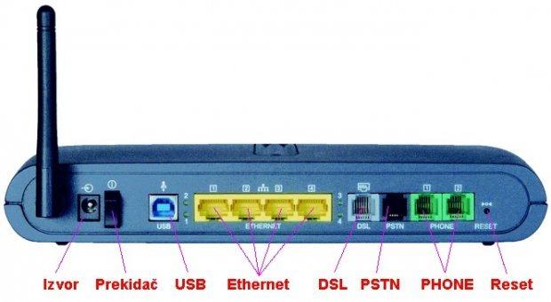 U paketu dolazi bežični modem, strujni adapter, 2 ethernet-LAN kabela, 2 telefonska kabela, USB kabel, instalacijski cd i upute.