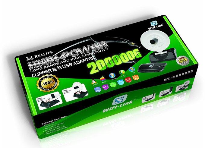 2000mW izlazne snage - uobičajena snaga ostalih kartica je 75-100mW max. Jači signal do 20x!