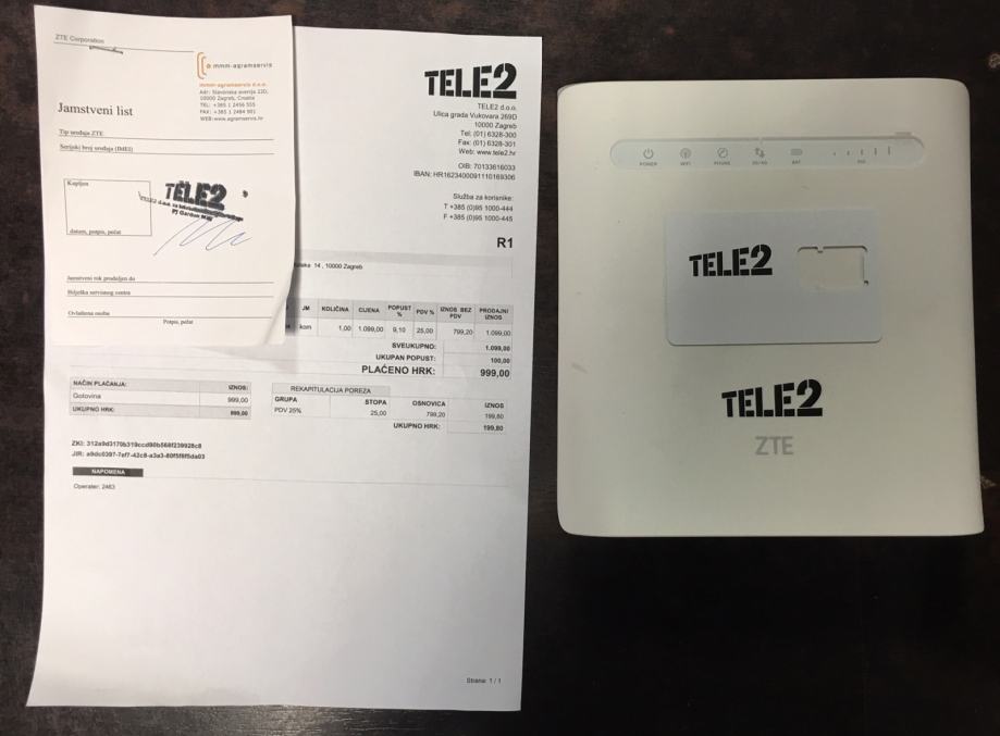 Router ZTE MF286, kupljen u Tele2 za pokućni internet, račun garancija još 18 mjeseci.