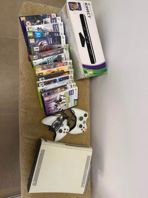 Prodajem Xbox 360 konzolu u bijeloj boji zajedno s Kinect senzorom i većim brojem igara. Uz konzolu dolaze dva kontrolera te sljedeće igre: Tom Clancy's, Blood Bowl, DC, Gears of War, Pro Evolution Soccer 6, Pro Evolution Soccer 2009, Dead or Alive 4, Minigocats i još nekoliko naslova vidljivih u paketu. moguće osobno preuzimanje na području Rijeke ostalo šaljem dostavom, moguće je odvojeno kupit kinect i igre ili zamjena