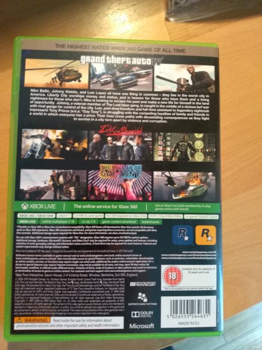 Sadrži 3 igrice u 1 boxu; GTA IV, GTA the lost and damed i GTA the ballad of gay tony.