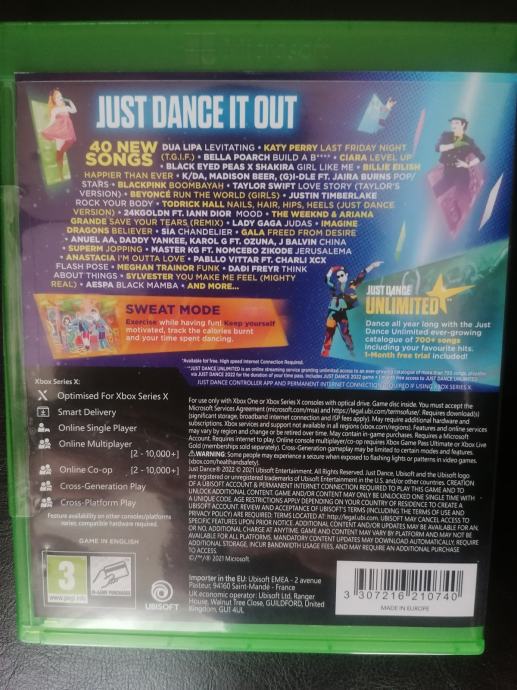 Nova, nekorištena igrica Just Dance 2022 koja odgovara za Xbox Series X.