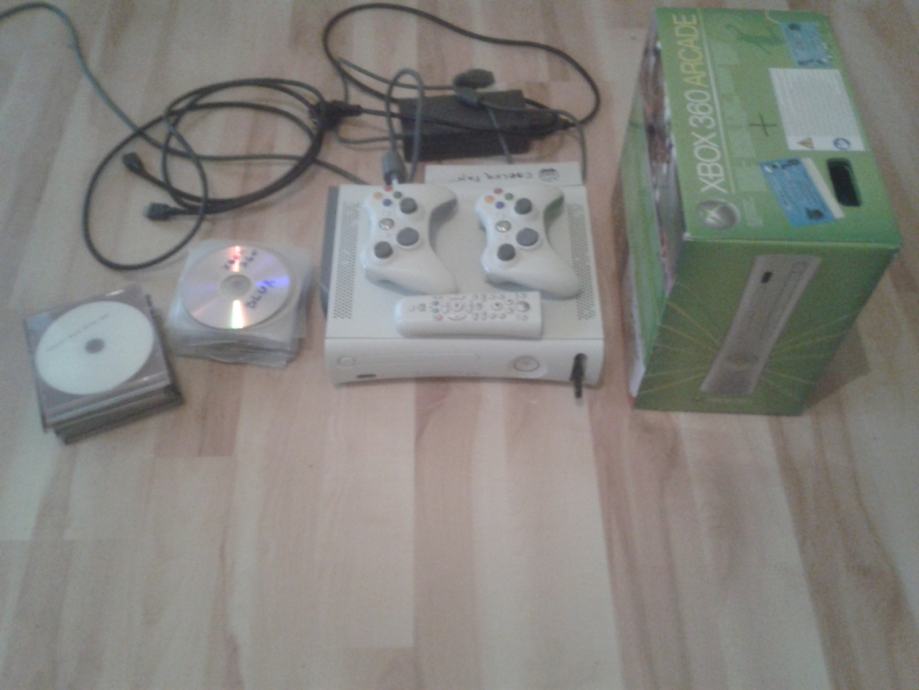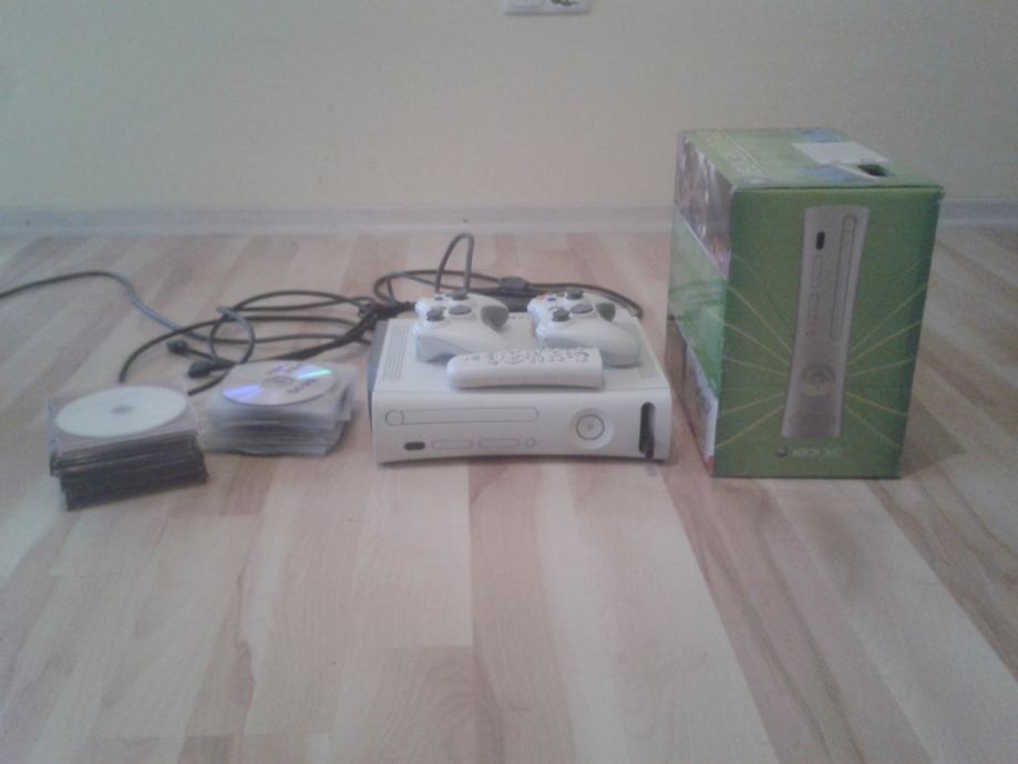 Prodajem navedeni Xbox 360 star oko dvije godine, ali jako malo korišten. Konzola je čipirana (mogućnost igranja ne orginal igrica), Ima sve najnovije nadogradnje (mogu se igrati najnovije igre). Uz njega dobivate kutiju i sve papire, 2 kontrolera (joystica), sve kablove naravno i HDMI kabel, ventilator da se ne zagrijava brzo, HDD za više memorije i mogućnost 'instaliranja' igrica na njega, dodatni usb za jos vise memorije, Xbox 360 daljinski i 60-ak (ako ne i više) igrica.