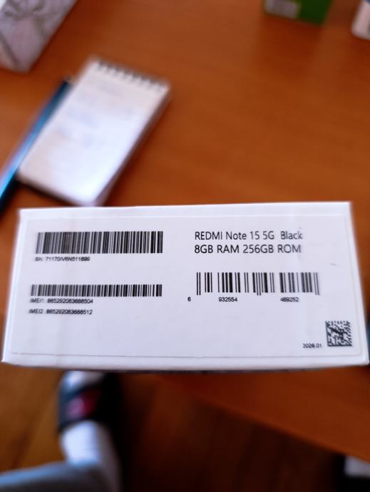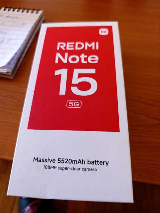 Prodajem novi Xiaomi Redmi Note 15 5G u crnoj boji. Radi se o modelu s 8GB RAM-a i 256GB interne memorije. Mobitel dolazi s baterijom kapaciteta 5520mAh te kamerom od 108MP.