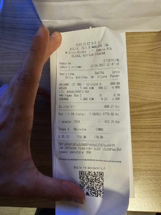 Kupljen 30.09.2023. u xioami store u Rijeci i placen 900eura, znaci star cca 7mj