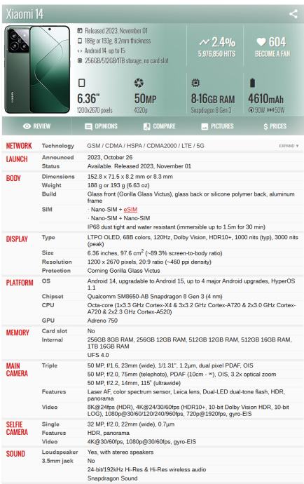 Prodajem Xiaomi 14, crni, 12GB RAM/512GB mem. + dashcam Mi dash cam 1S