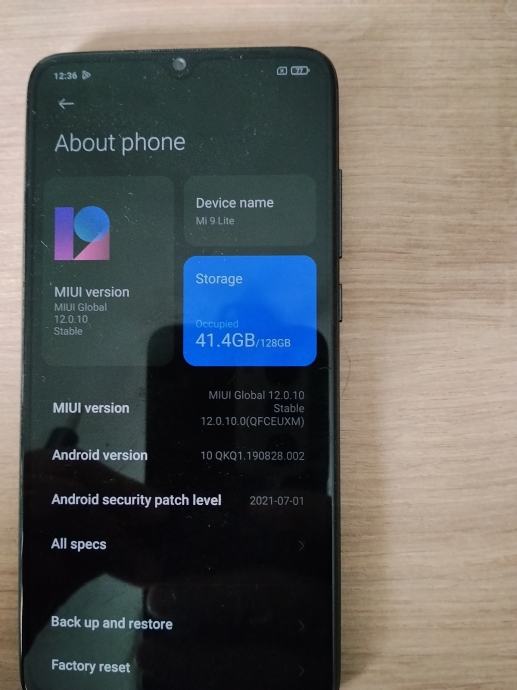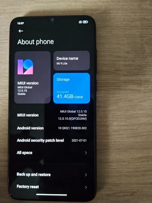 Prodajem Xiaomi Mi 9 Lite, rabljeni uređaj s 128GB interne memorije. 6 GB rama. Mobitel radi na MIUI Global 12.0.10 Stable verziji softvera, s Androidom 10. Ugrađeni čitač otiska prsta nalazi se ispod ekrana.