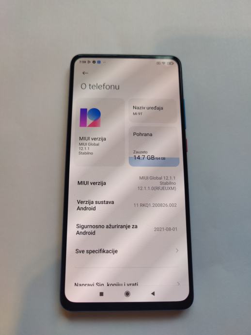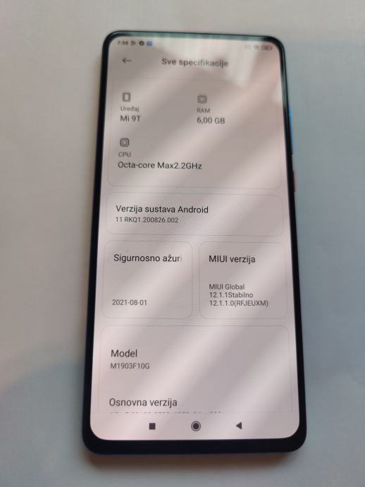 Ispravan i dobro očuvan mobitel sa punjačem, baterija odlična,6 GB RAM, 64 GB ROM, Android 11,prednja kamera izlazi u gornjem dijelu (popup kamera), LCD 6.39 inča,glavna kamera 48 mp,uz mobitel ide silikonska maska (crna) i punjač