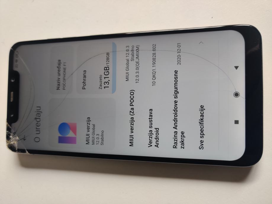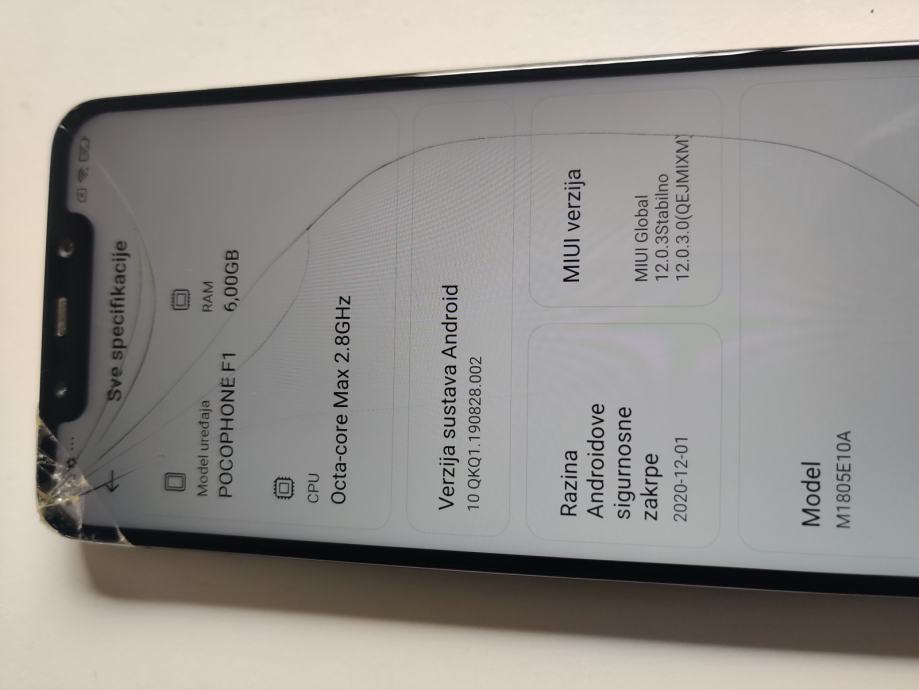 Poco F1 ,6 GB RAM/128 GB ROM, bez punjača --oštećen ali radi