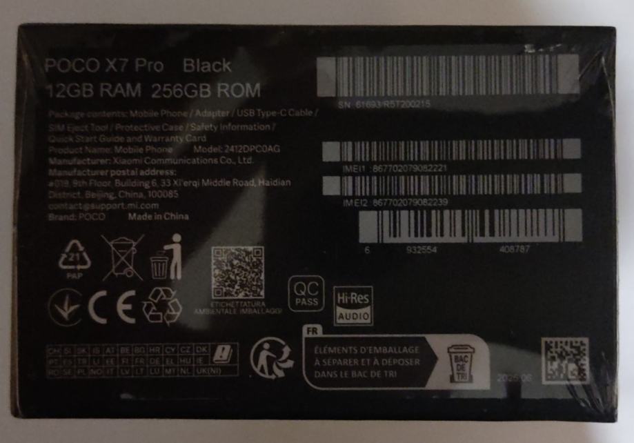 Prodajem potpuno novi XIAOMI POCO X7 Pro mobilni telefon, crne boje sa 12GB RAM-a i 256GB interne memorije. Smartphone je neotpakovan, u originalnom pakiranju i sa svim dodacima: adapter (90W turbo punjenje), USB Type-C kabel, alat za SIM, zaštita ekrana i pozadine uređaja, te upute i jamstveni list.