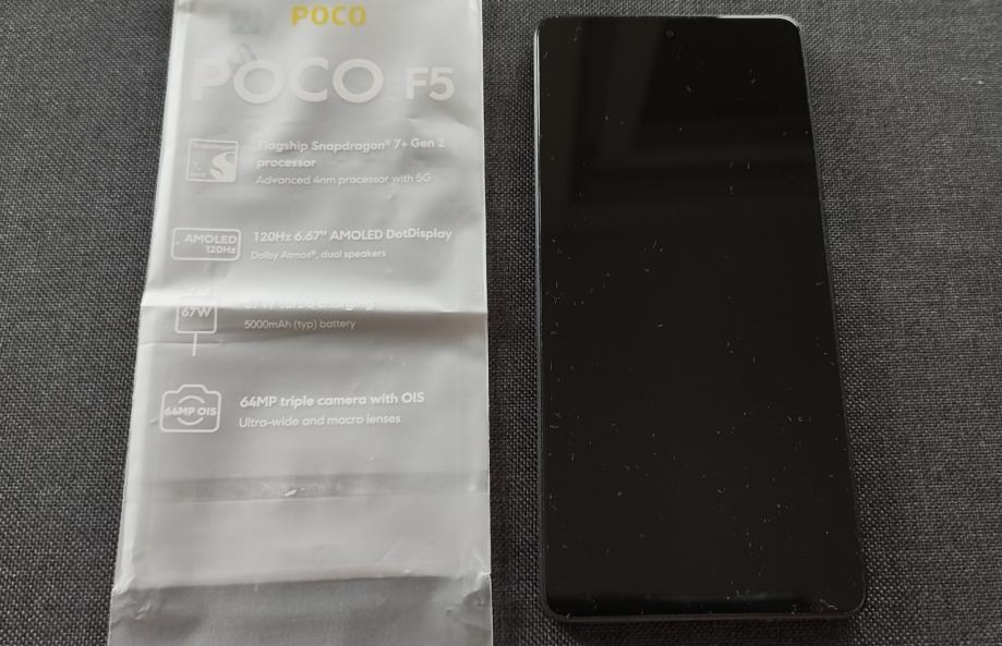 Prodajem godinu dana korišteni POCO F5 crne boje. Model je s 256 GB memorije za pohranu i 8GB radne memorije.