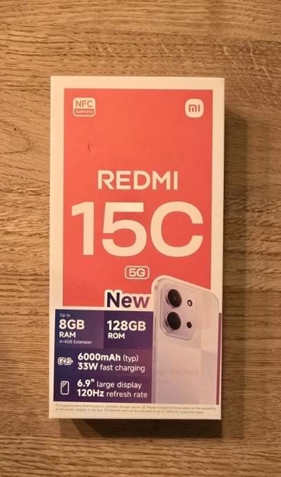 Prodajem nov Xiaomi Redmi 15C 5G mobitel, potpuno zapakiran. Uređaj ima 8GB RAM-a i 128GB interne memorije, 5G podršku te bateriju od 6000mAh s brzim punjenjem od 33W. Opremljen je s 6,7" zaslonom koji ima 120Hz refresh rate i MediaTek Dimensity 6300 procesorom. Sustav je Xiaomi HyperOS, a uređaj dolazi s 50MP AI dual kamerom.