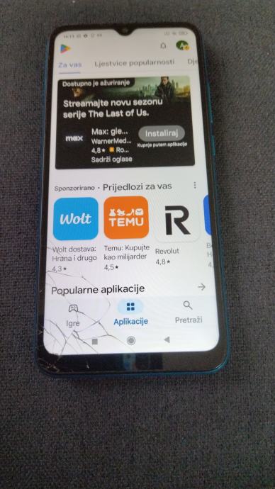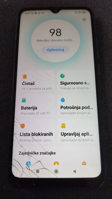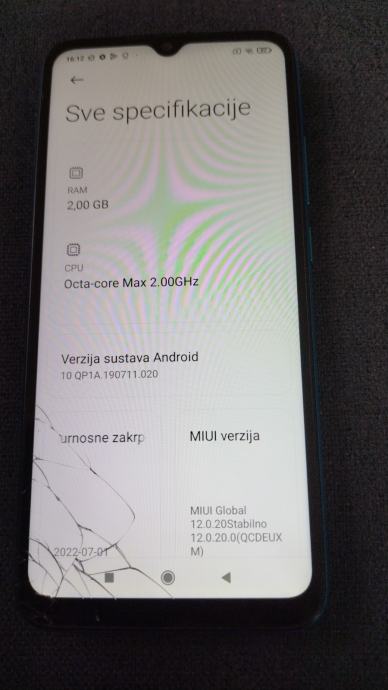 Oštećen donji lijevi kut ekrana.Sve radi uredno.Android 10,Octa-core 2.00 GHz, 32 GB, 2 GB RAM,veliki 6.53 inch ekran, 13 MP/5 MP, 5000 mAh,dual SIM.Uz njega dajem zamjenski punjač,slušalice i maskicu.Šaljem isključivo Tiskom/3 EUR/uz prethodnu uplatu.