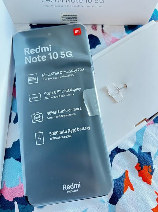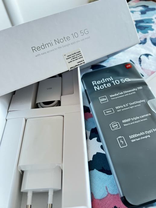 Prodajem korišteni Xiaomi Redmi Note 10 5G mobitel u odličnom stanju s originalnim pakiranjem. Uređaj dolazi sa svim dodatcima, uključujući punjač i priručnik s tehničkim specifikacijama. Idealan smartphone koji podržava 5G tehnologiju i ima moćnu 48MP kameru.