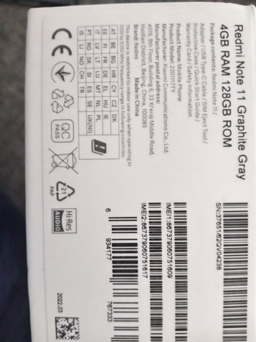 Novi nekorišteni Redmi Note 11 Graphite Gray 4GB RAM 128 GB ROM, 5G