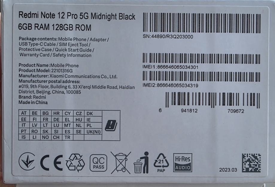 Redmi Note 12 Pro 128gb 5G crni