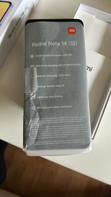 Redmi Note 14 5G Midnight black 108MP AI camera nikad korišten, 8GB RAM 256GB ROM