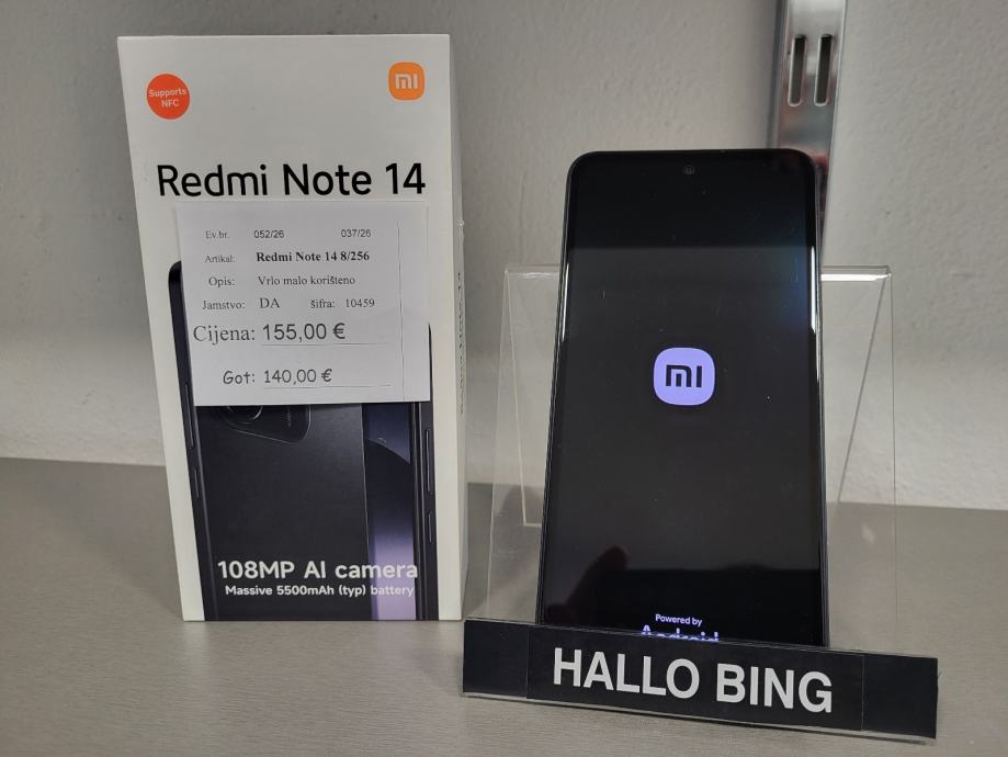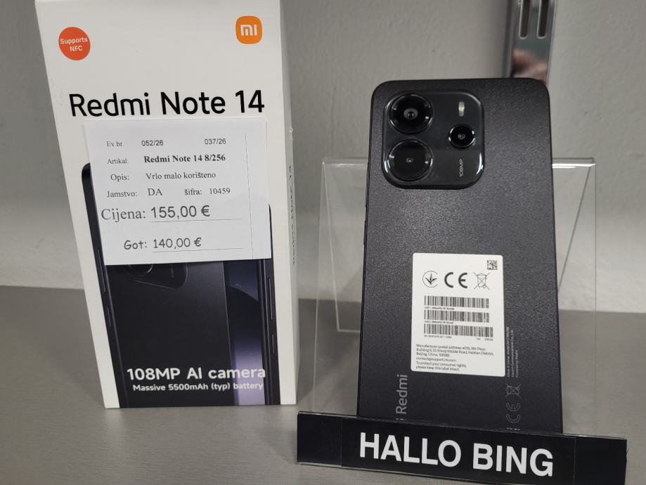 Redmi Note 14 kratko koristen kao zamjenski mobitel. Racun, jamstvo do 02/2027. Besplatna dostava BoxNow.