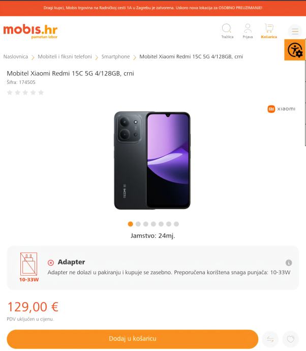 Prodajem Xiaomi Redmi 15C 5g mobitel. Kupljen 24.11. 2025. U A1. Korišten nekoliko sati radi probe. Bez tragova korištenja. Uvijek sam koristio Samsung mobitele već više od 25 godina, i ne mogu da se priviknem na Xiaomi. Kupio sam ga prošli tjedan od gospođe koja ga je kupila na ugovor u A1. Meni je moj Samsung pao i razbio se, ali uz najbolju volju da se prebacim na Xiaomi ne ide. Nabavio sam novi Samsung, tako da je Xiaomi na prodaju.Mobitel ima 6000 mah bateriju, kamera 50 megapiksela, osvježenje ekrana 120 hz. Uz mobitel ide i original zaštitna maskica.