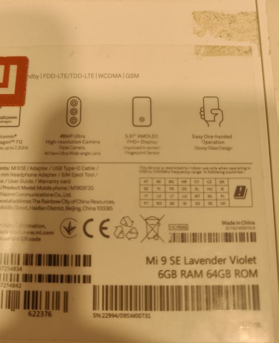 Xiaomi Mi 9 SE, 6GB, 64GB, kutija, punjač, očuvan