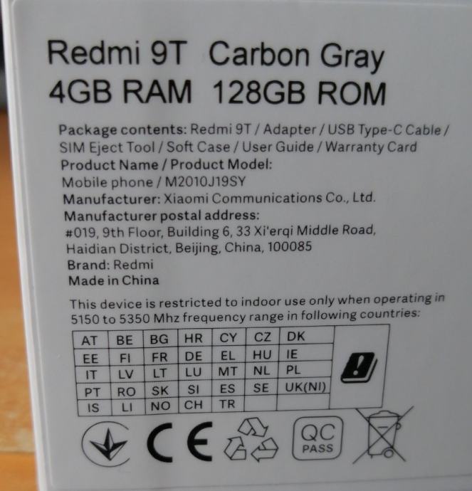 Xiaomi Redmi 9T (4/128, sivi, račun, garancija, nekorišten, novo)