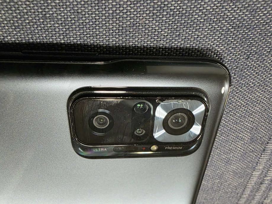 Na mobitelu je oštećeno staklo stražnje kamere (ne utječe na fotografije), a primijeti se i "burn-in" na ekranu (ne utječe na rad)