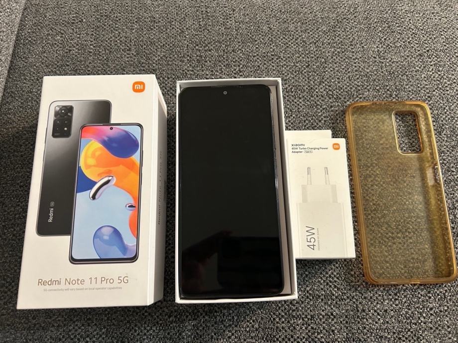 Prodajem Xiaomi Redmi Note 11 Pro 5G mobitel u Graphite Gray boji. Uređaj ima 6GB RAM-a i 128GB interne memorije. Dolazi u originalnoj kutiji s punjačem i transparentnom zaštitnom maskom.