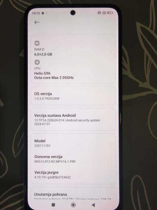 Softver: Ažuriran na najnoviji Xiaomi HyperOS sustav (Android 13) s najnovijim sigurnosnim zakrpama (vidljivo na slici postavki).