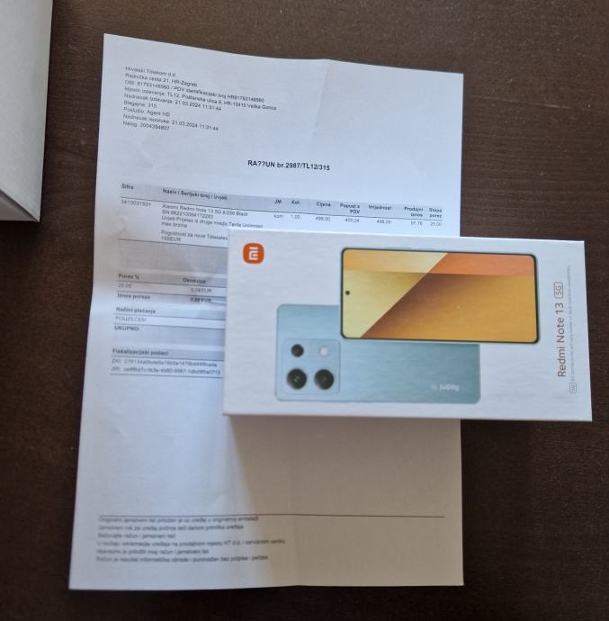 Prodajem mobitel Xiaomi Redmi Note 13 5G Graphite Black, 8GB RAM, 256GB ROM, nov, neotvaran, račun, garancija.