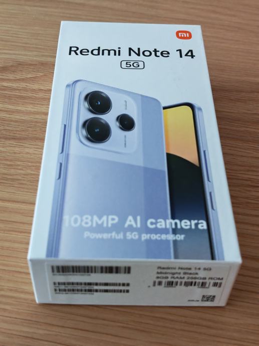 Prodajem potpuno novi, neraspakirani Xiaomi Redmi Note 14 5G (8 GB / 256 GB) Midnight Black – uređaj je još uvijek u originalnoj, tvornički zatvorenoj ambalaži.