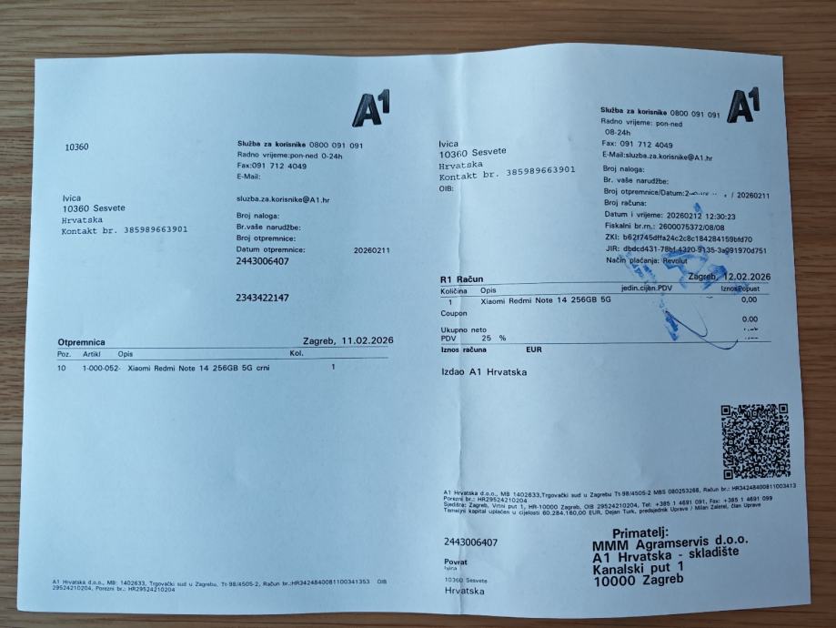 Mobitel je kupljen u A1 Hrvatska i ima važeću garanciju 24 mjeseca (račun prilažem kupcu).