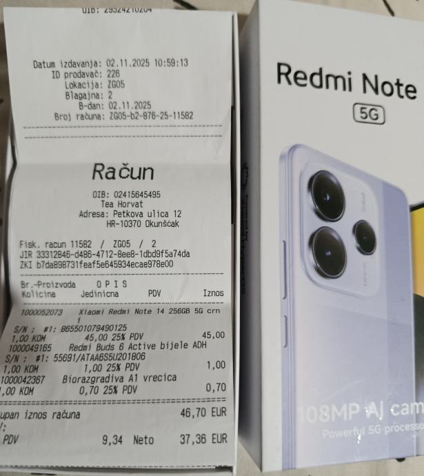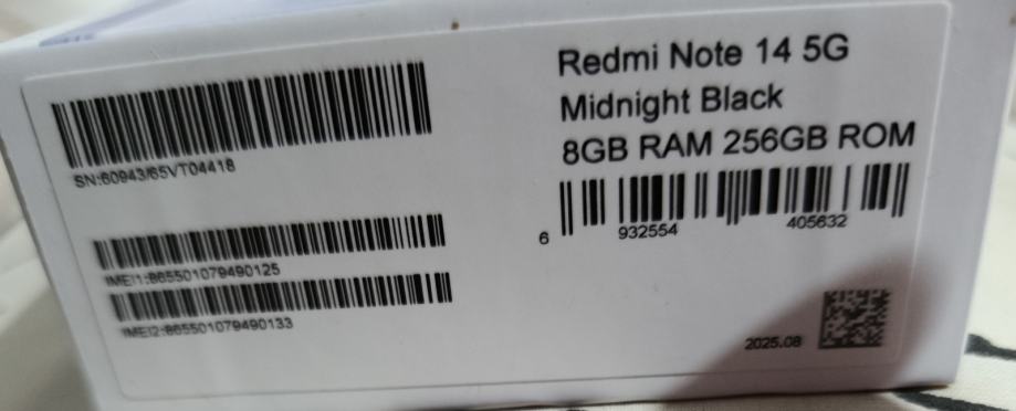 Xiaomi Redmi Note 14 5G 6.67" 8/256GB 108mpx 120Hz NOV ZAPAK. gar.2god