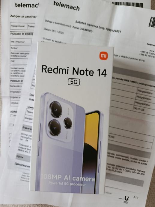 Xiaomi Redmi Note 14 5G 6.67" 8/256GB 120Hz 108mpx NOV ZAPAK. gar.2god