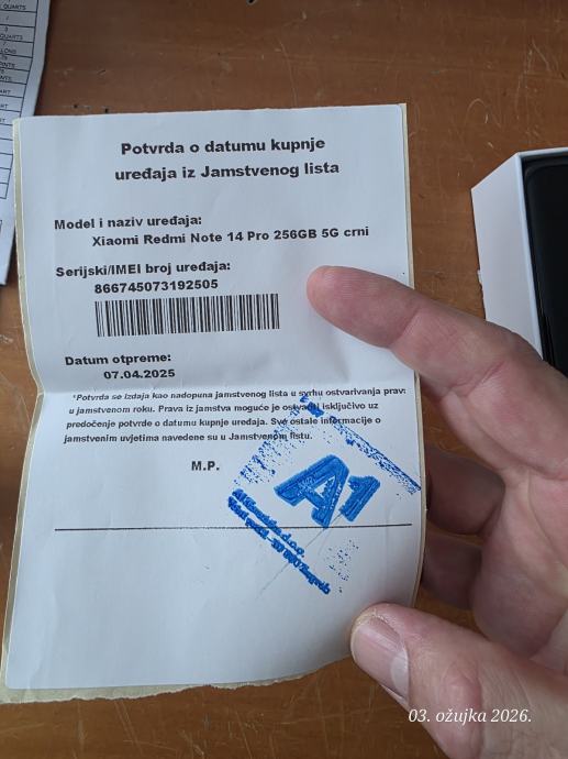 Prodajem Xiaomi Redmi Note 14 Pro 5G s 8 GB RAM-a i 256 GB unutarnje memorije. Mobitel je kratko koristen kao drugi mob te je u stanju kao novi bez tragova korištenja, dolazi s originalnom kutijom te novim orginal USB kabelom za punjenje. Uz uređaj ide i orginal zaštitna maska. Jamstvo do 07.04.2027 osobno preuzimanje Zagreb Trnje. Samo prodaja.