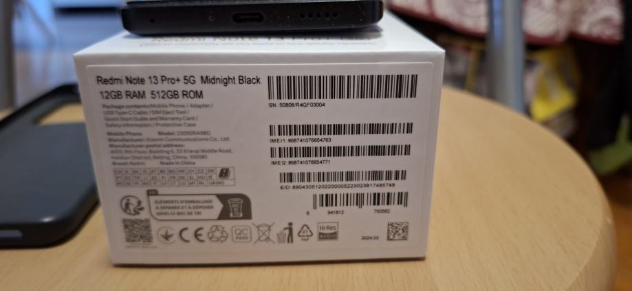 Prodajem mobitel Xiaomi Redmi Note 13Pro+5G Midnight Black 12GB RAM 512GB ROM.