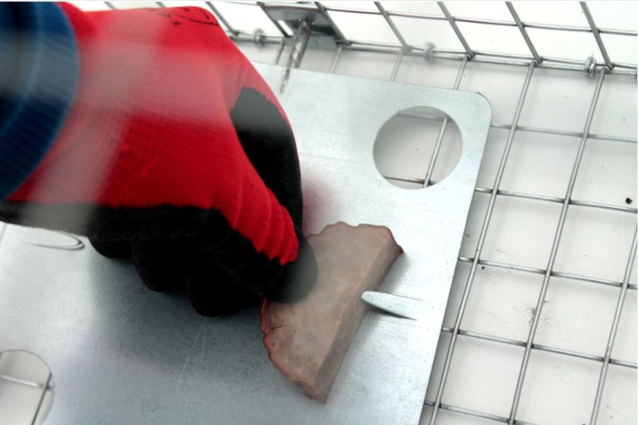 Zamka ima kontrolni poklopac sa strane - koji se koristi za umetanje mreže u zemlju - vrlo je važno da ne upadnete u zamku rukom! U većini zamki na tržištu inspekcijski zaklop je najslabija točka - jaka životinja može izbiti loš osigurani poklopac.