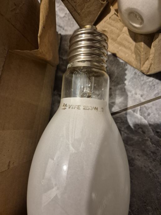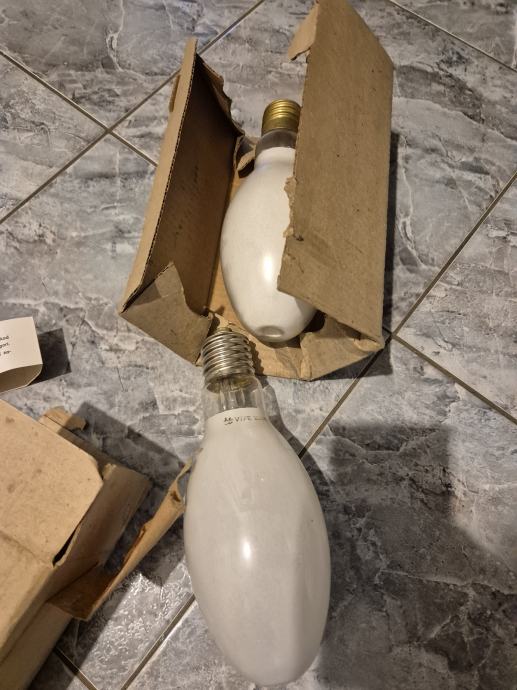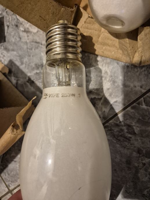 Prodajem dvije ispravne halogene žarulje VTFE 250W 220V sa ogromnim grlom veće veličine.Dužina sa grlom je 24cm ,obujam grla 13cm.