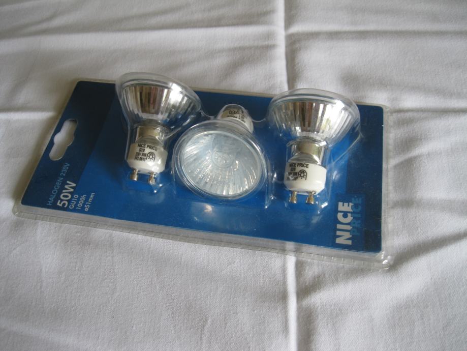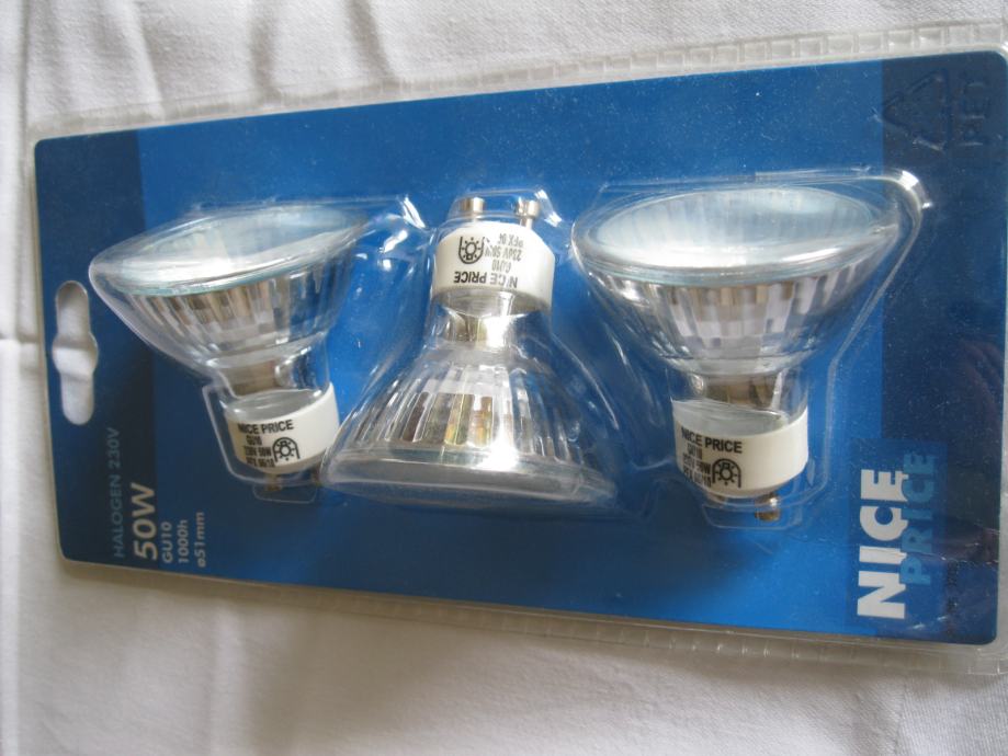 Nove zapakirane halogene žarulje od 50 W, 3 komada.