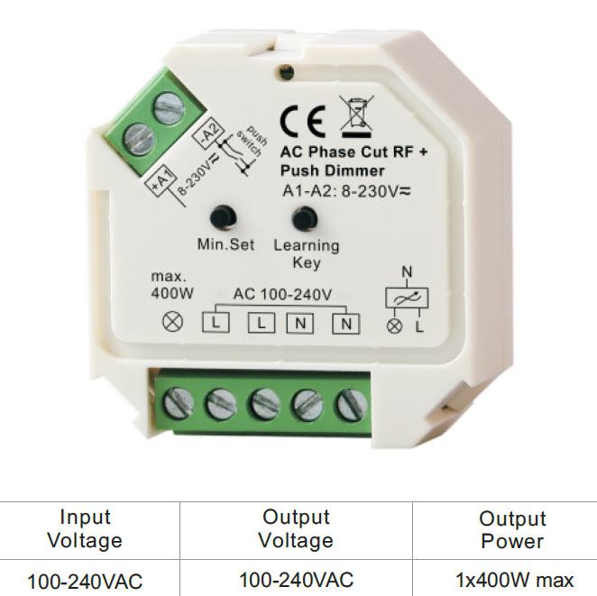 DODATNA OPCIJA - Dimmer za LED rasvjetu, kontrola preko tipkala PUSH-DIMM ili daljinskog RF u isto vrijeme.