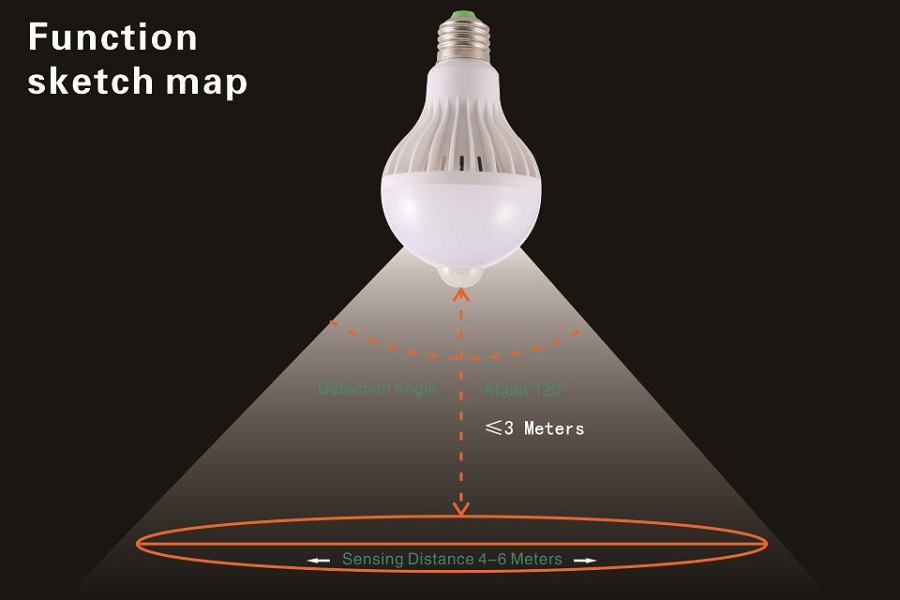 Princip rada: Kada se nalazite u području senzora, žarulja radi oko 40 sekundi. Nakon 40 sekundi, ako se ne pomaknete žarulja se gasi. Previše svijetle ili tijekom dana, žarulja se ne uključuje. Radi samo u mračnom okruženju ili noću.