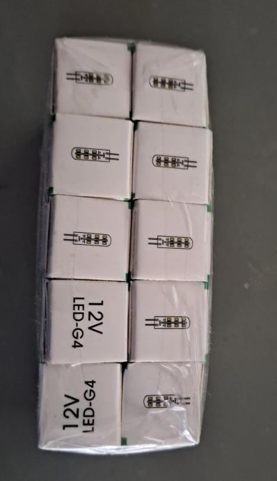 Komplet žarulja G4 led 12V na prodaju isključivo u paketu(svih10). Bjela svjetlost 4000K, 3 W( kao 18W halogen). izvrsno svijetlo