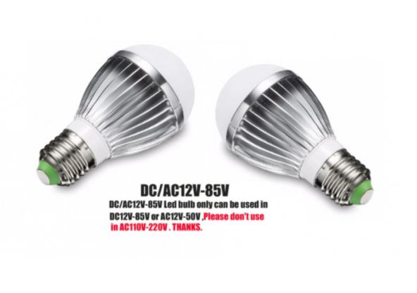 Niskonaponska žarulja za uštedu energije namijenjena je standardnoj uporabi gdje nema izmjeničnog napona 110-250V. Namijenjen je za napajanje DC 12V-48V akumulatora putem baterije ili niskonaponskog izmjeničnog napajanja AC / DC12-85V, gdje se koristi solarni niskonaponski električni instalacijski sustav. Štedljiva niskonaponska DC / AC svjetiljka ima visoki svjetlosni učinak s minimalnom potrošnjom energije, dizajnirana je za unutarnju uporabu, kućište raspršuje LED svjetlo i štiti od izravnog odsjaja u oči. Nema infracrveno i ultra ljubičasto svjetlo te ne podržava prekidače za prigušivanje struje. Ne spajajte žarulje na AC 110-250V AC mrežu