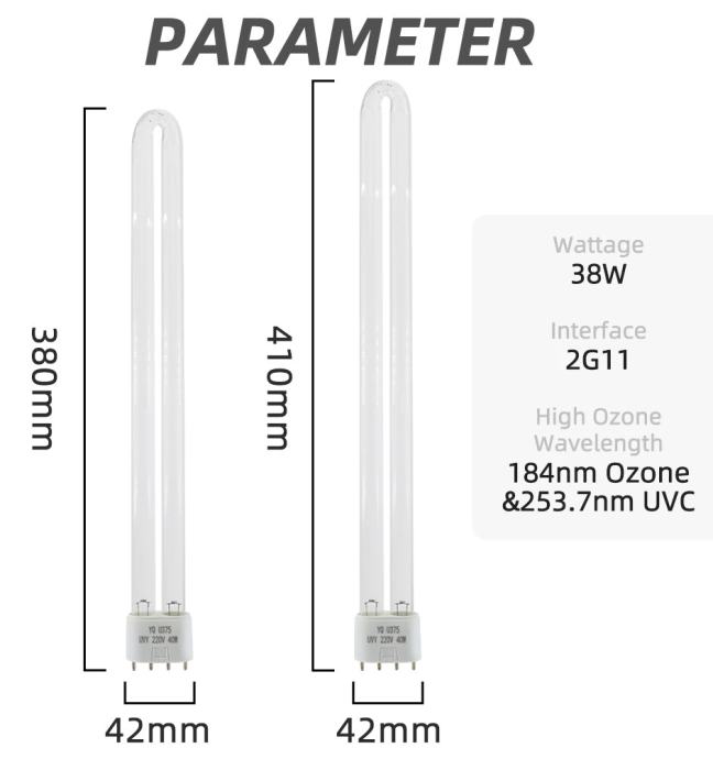 UV OZON žarulja za sterilizirajuće lampe dužine 380 i 410 mm 38W podnožje 2G411.