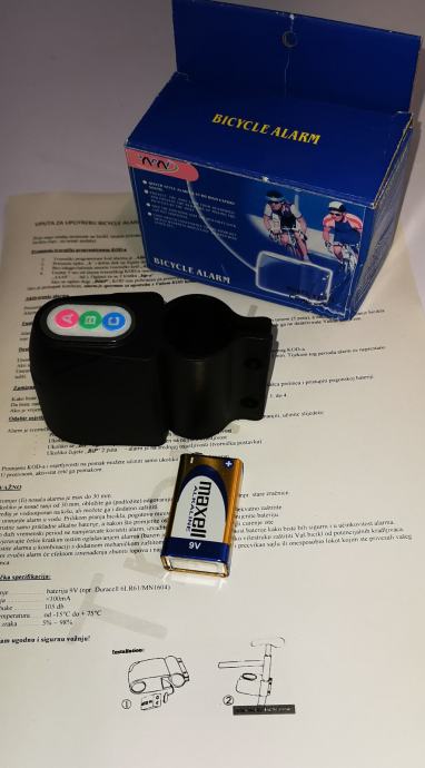 Alarm za bicikl - nekorišten, reagira na pomak, snažan zvuk