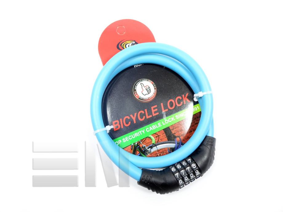 Lokot za bicikl, za zaštitu od krađe na šifru od 4 broja, šifru od 4 broja namještate sami, mogućnost mjenjanja šifre Plastificirana sajla debljine 12mm i dužine 80 cm. Može poslužiti i za zaštitu drugih stvari od krađe.
