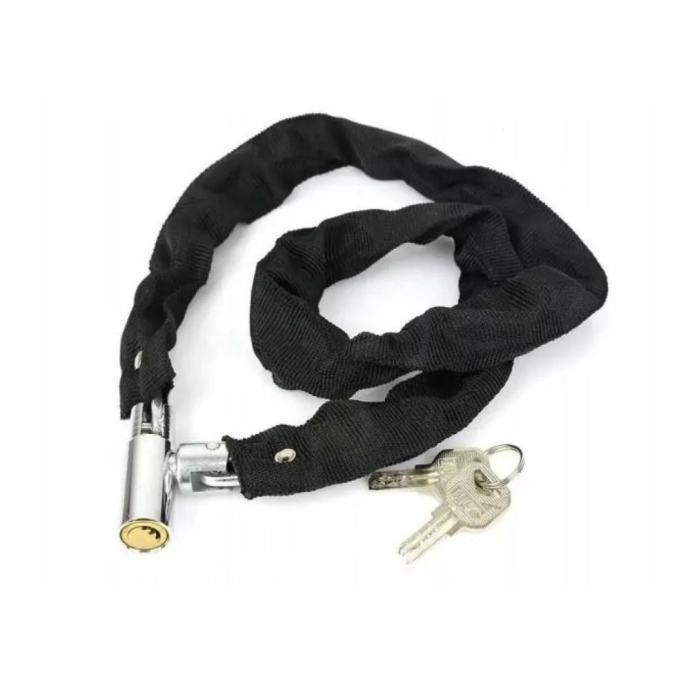Sigurnost vašeg bicikla, skutera ili motocikla je vrlo važna, a naš lanac s lokotom je nezamjenjiv partner u tome. Ovaj izuzetno pouzdan lanac dužine 100 cm izrađen je od visokokvalitetnih metalnih karika presvučenih tkaninom. No, to nije sve – on također pruža dodatnu zaštitu od habanja laka, karoserije i ostalih površina.
