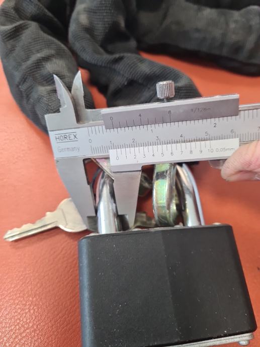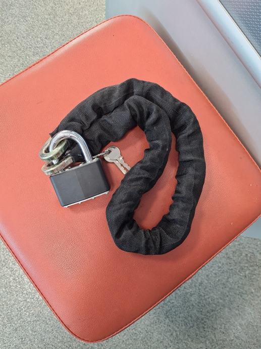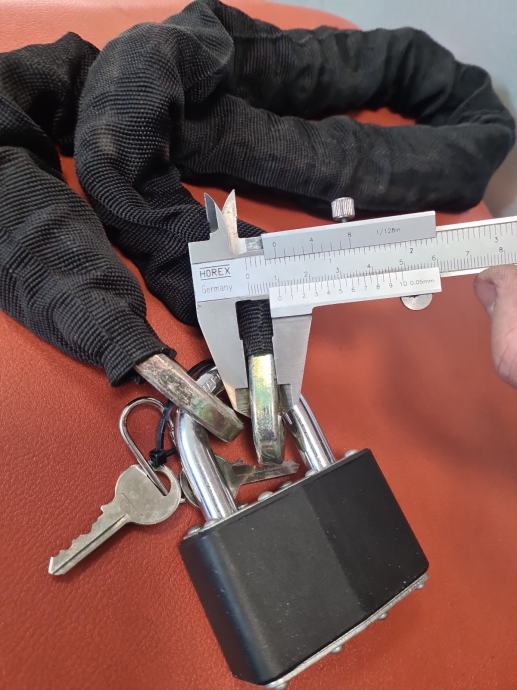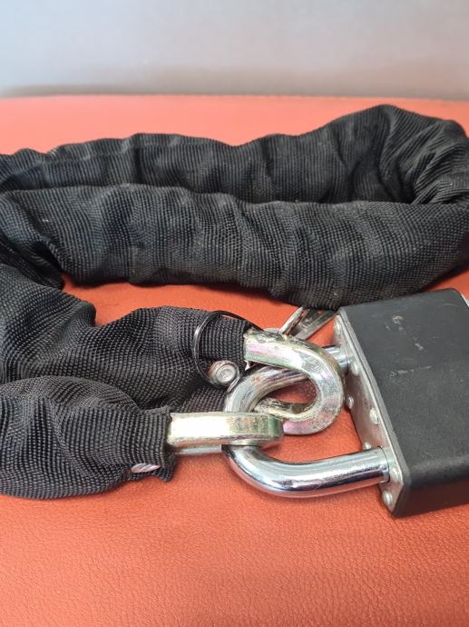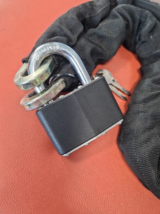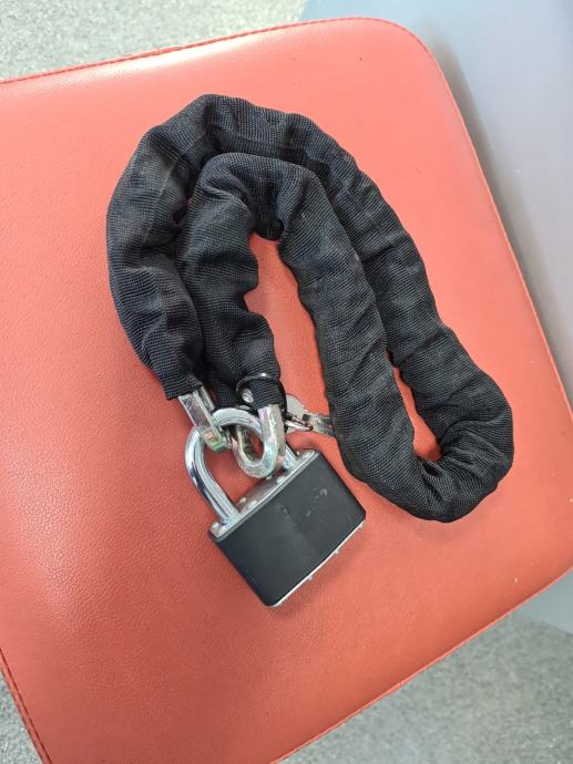 Prodajem kao novi lokot/lanac. Dužina je 950mm. Debljina lokota je 12mm a karika lanca 10mm.